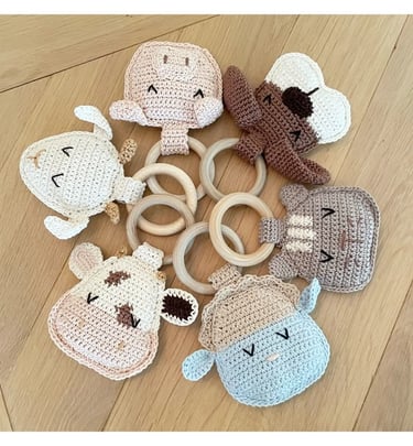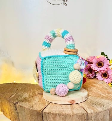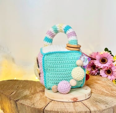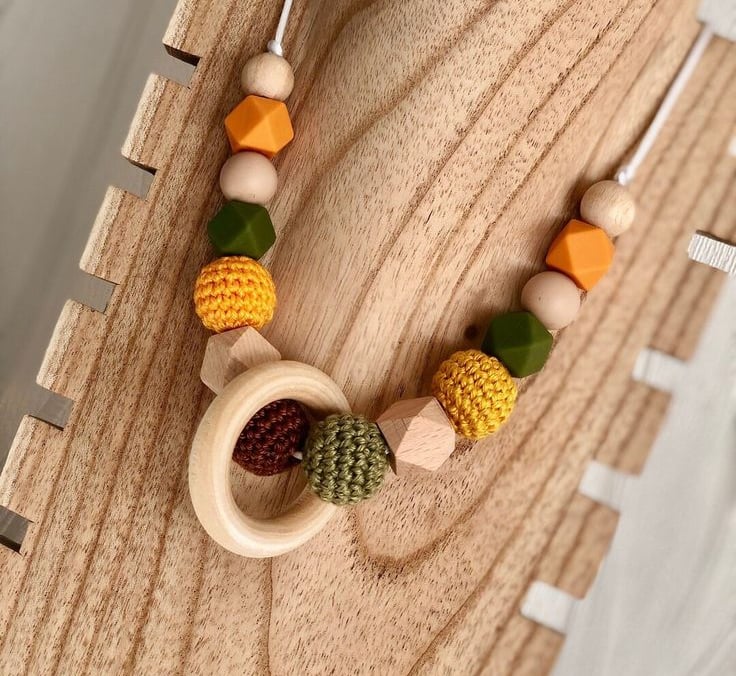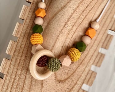 Produtos feitos à mão em crochê, pensados para acompanhar os primeiros meses do bebê com carinho e segurança. Brinquedos sensoriais, mordedores e colares de amamentação que estimulam o desenvolvimento e fortalecem o vínculo com quem cuida.