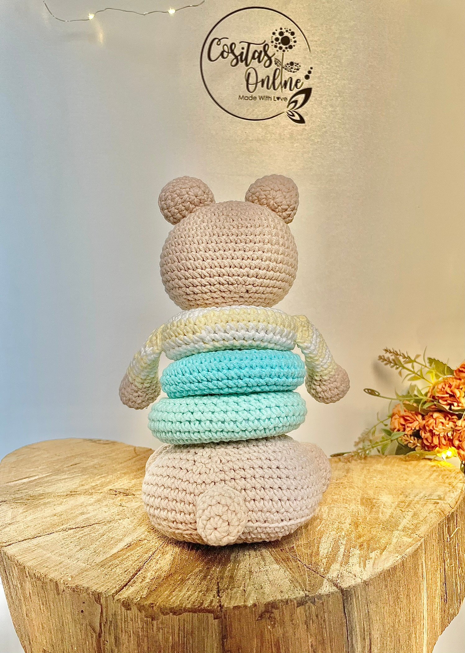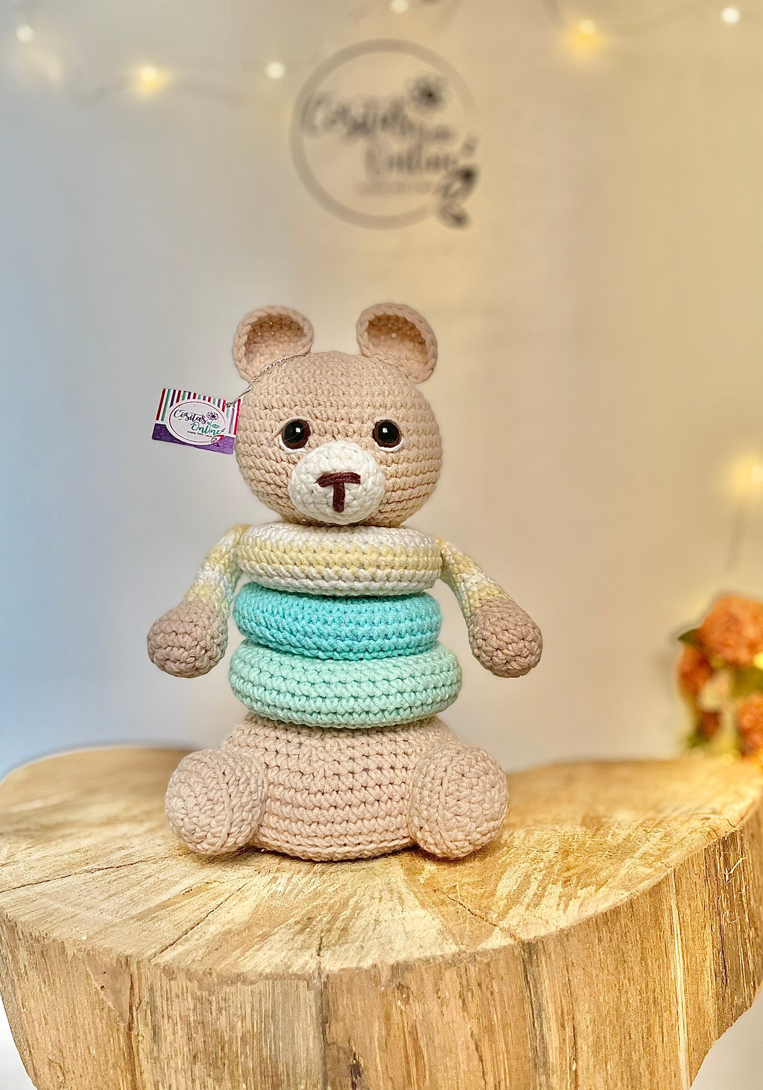AMIGURUMI TORRE ENCAIXE, BRINQUEDO DIDÁTICO MONTA DESMONTA URSINHO, FEITO EM CROCHÊ