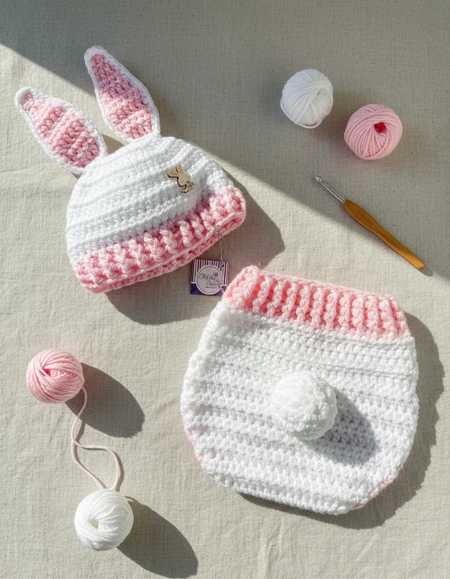 CONJUNTO FANTASIA COELHINHA EM CROCHÊ, RECEM NASCIDO – IDEAIS PARA ENSAIOS FOTOGRÁFICOS NEWBORN (TAMANHOS 0-1 Mês)