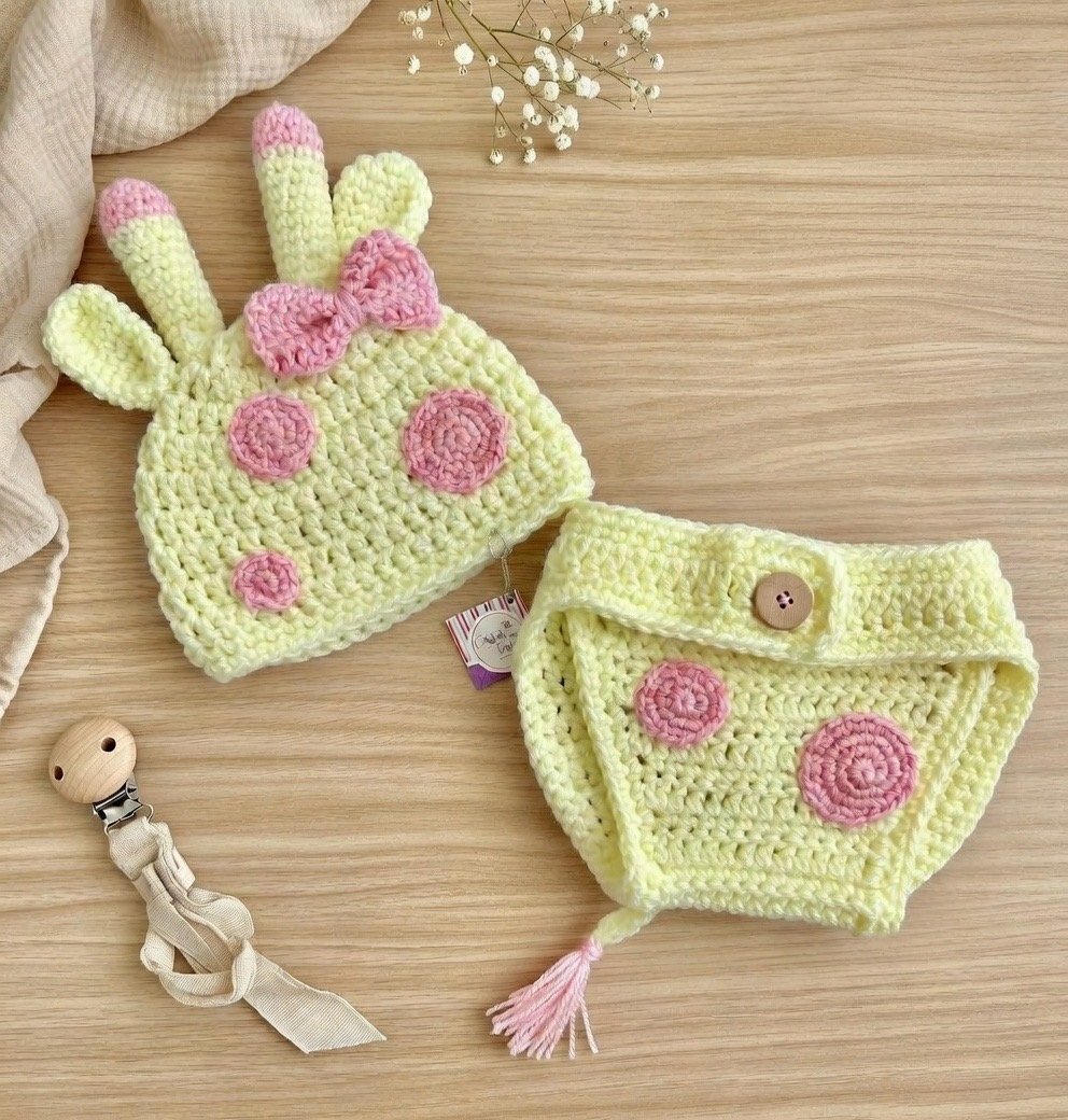 CONJUNTO FANTASIA GIRAFA EM CROCHÊ, RECEM NASCIDO – IDEAIS PARA ENSAIOS FOTOGRÁFICOS NEWBORN (TAMANHO 2-3 meses)